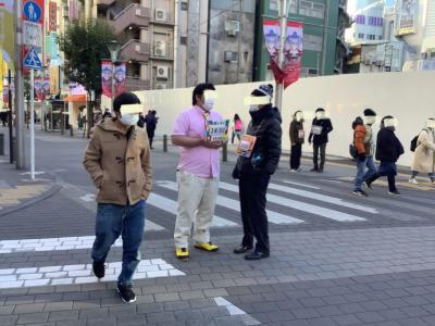 しばらく歩いていると…「ワンコイン お笑いライブ」の 呼び込みをする方 たちが いました。