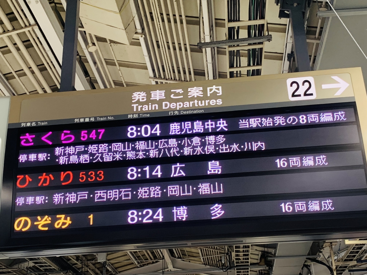 「新大阪駅」から こちらの【 新幹線 さくら 】547