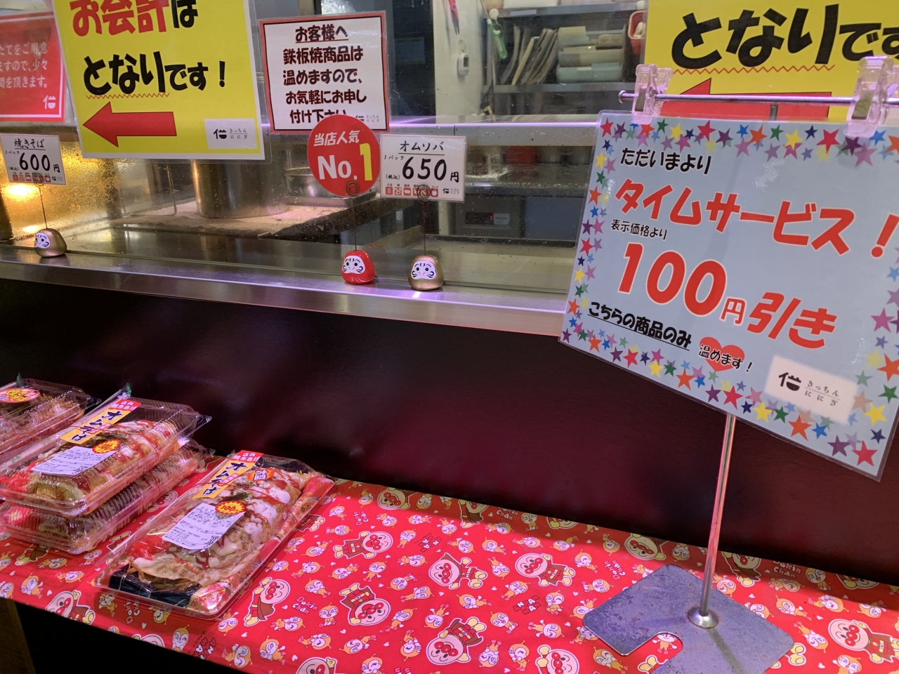でも「オムそば」などが「タイムサービス」で100円引きでした- 旅行時期