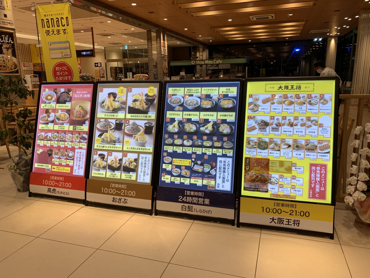 前回… 真夜中でも 24時間営業している「めん処」のお店がある「2階フードコート」へは