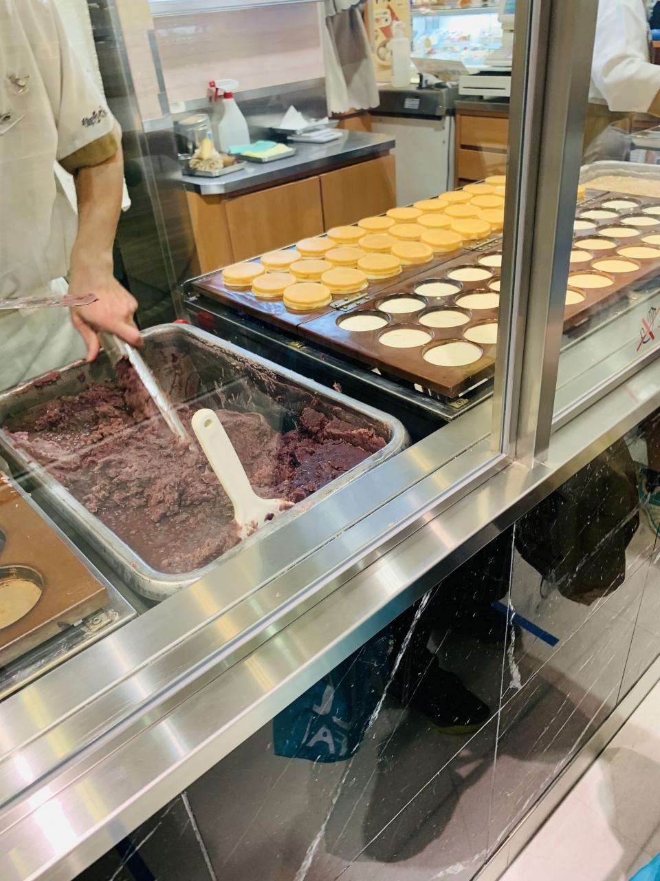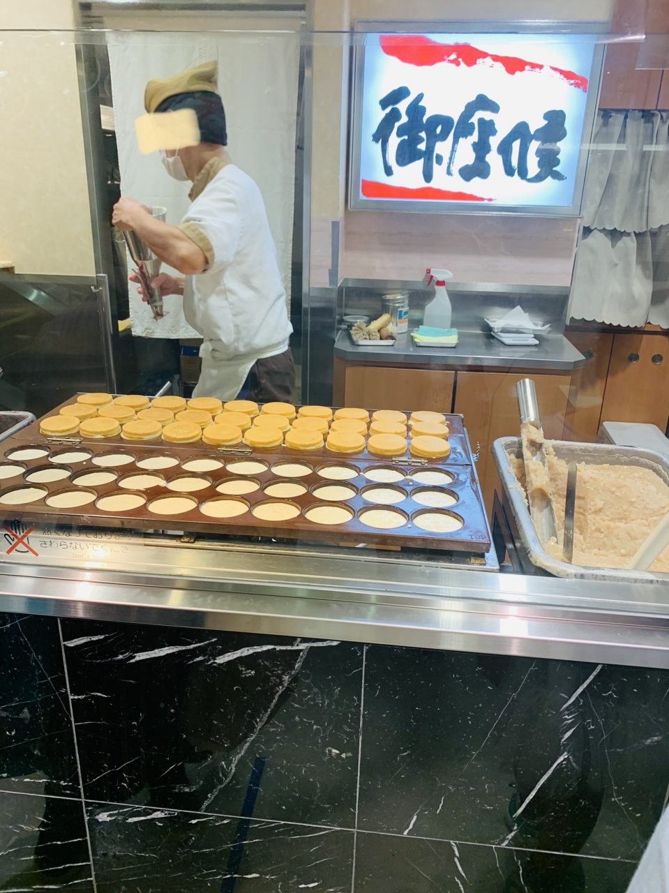 お店の方が 作っている工程を 見ながら 列に並んでいると
