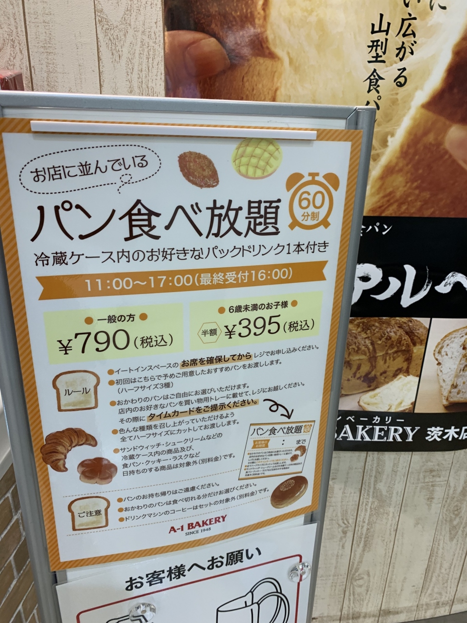 『パン 食べ放題』 ドリンク1本付き。