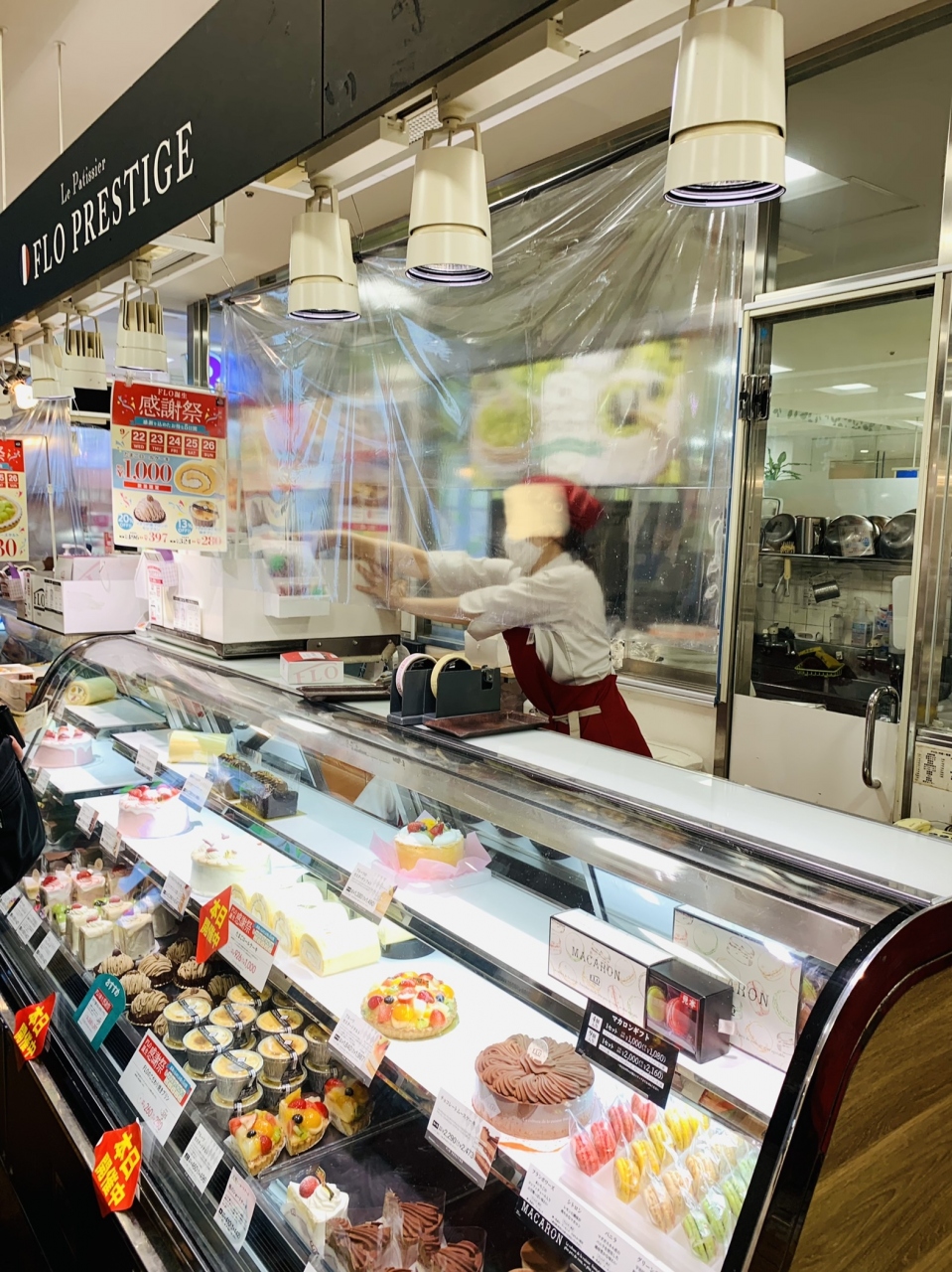 店内ガラスショーケースには 美味しそうなスイーツ や サラダなどのお料理が ズラリ〜