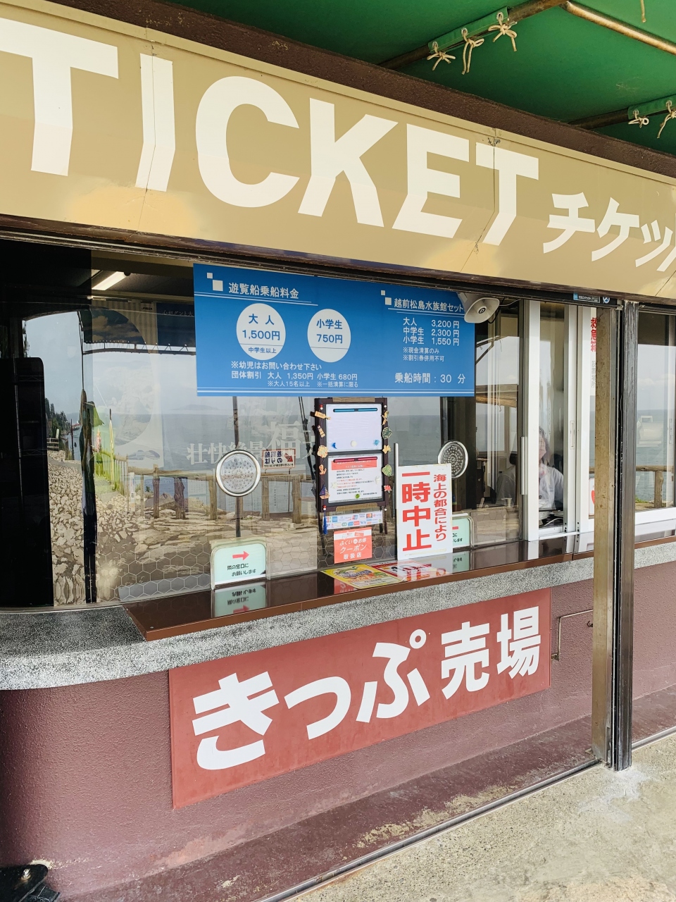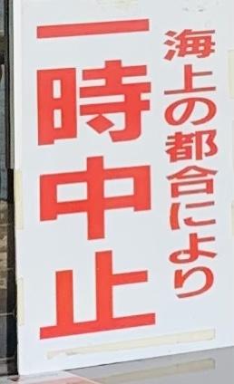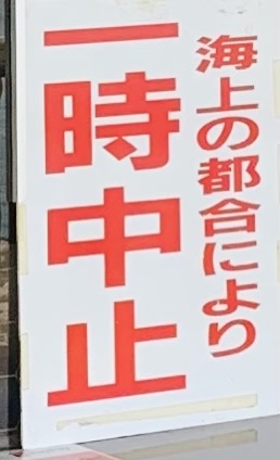 この時は、チケット売り場に『海上都合により 一時中止』書かれていて、