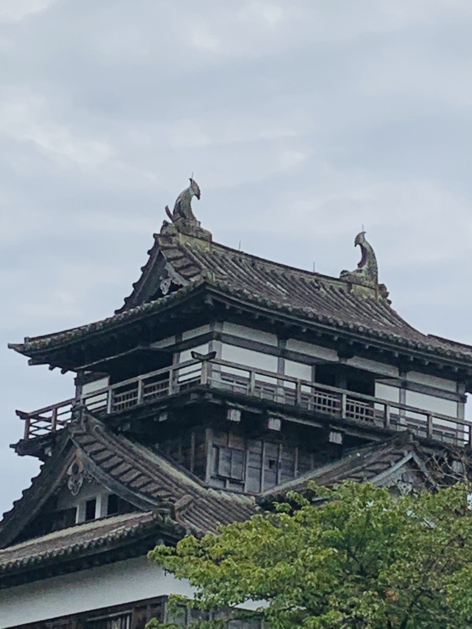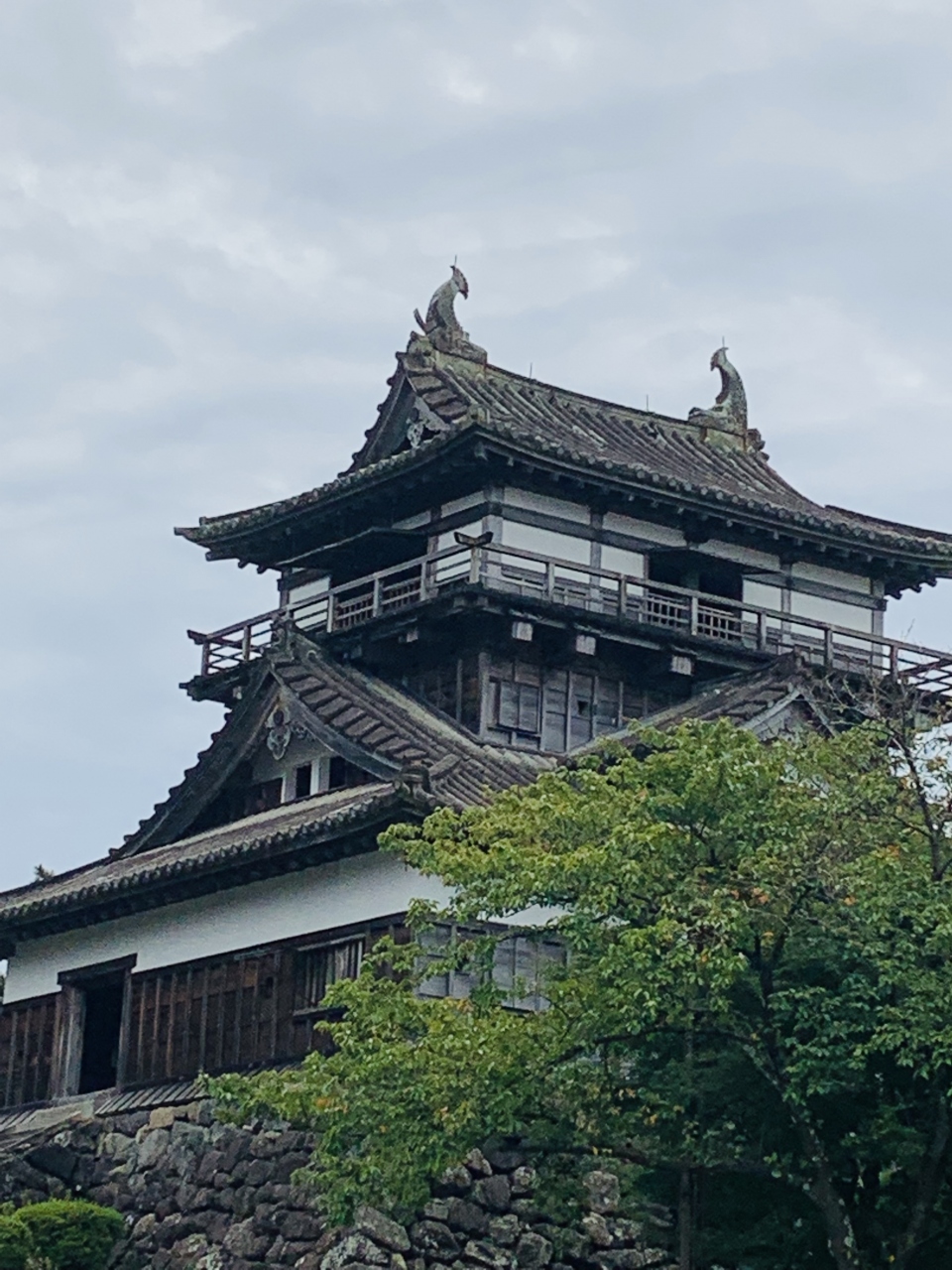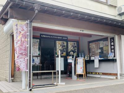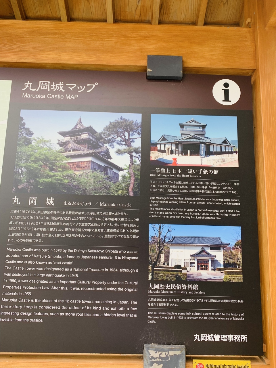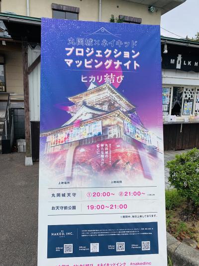 目の前の建物は「一筆啓上茶屋」です。その奥に「丸岡城」があります。