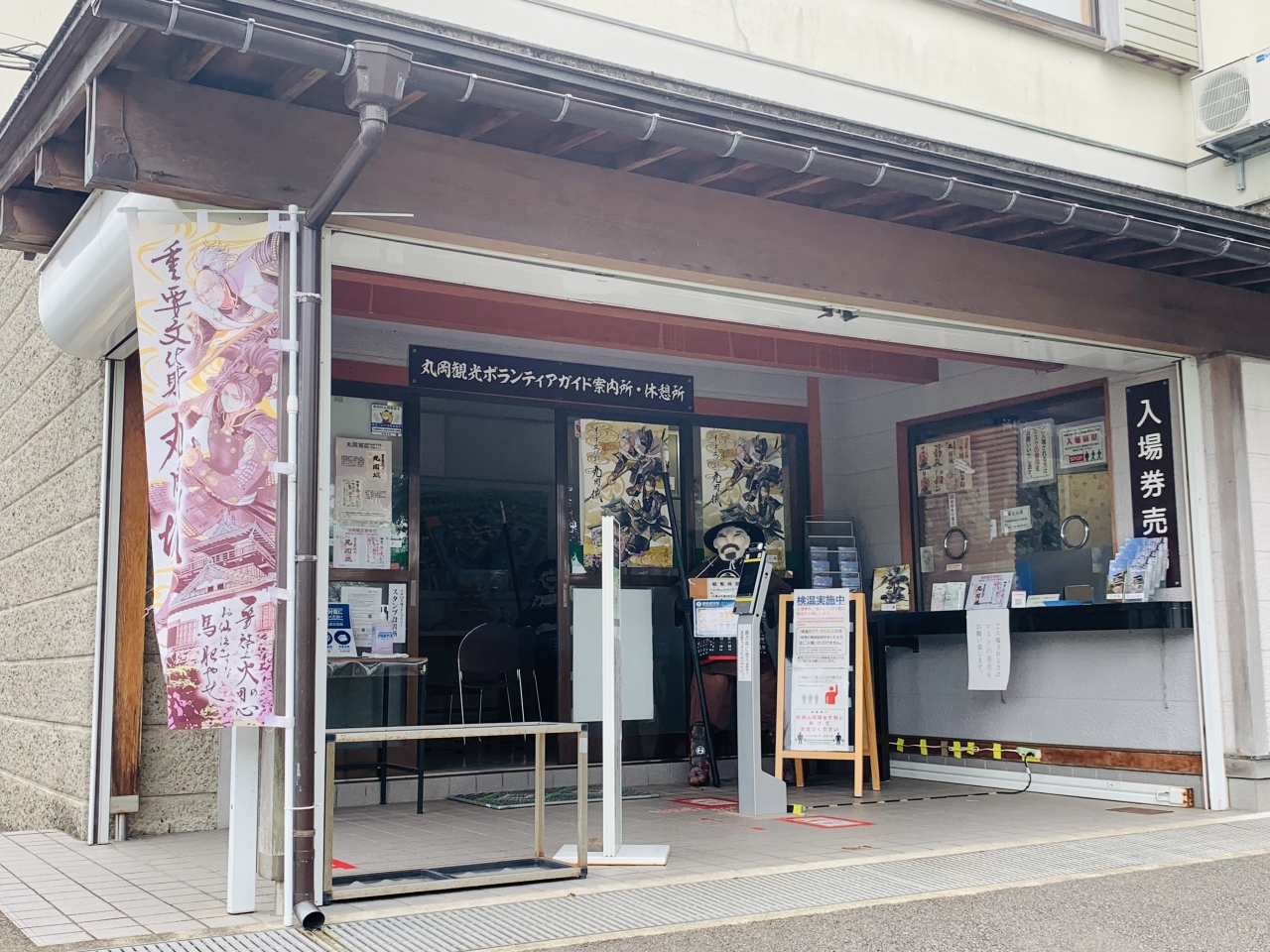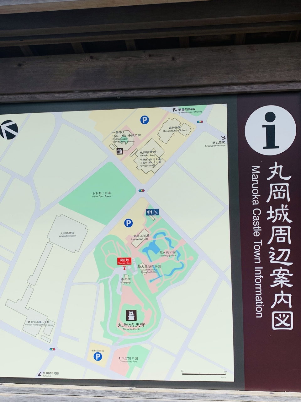 「丸岡城」の敷地内に駐車場に バス停があります。