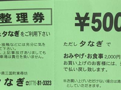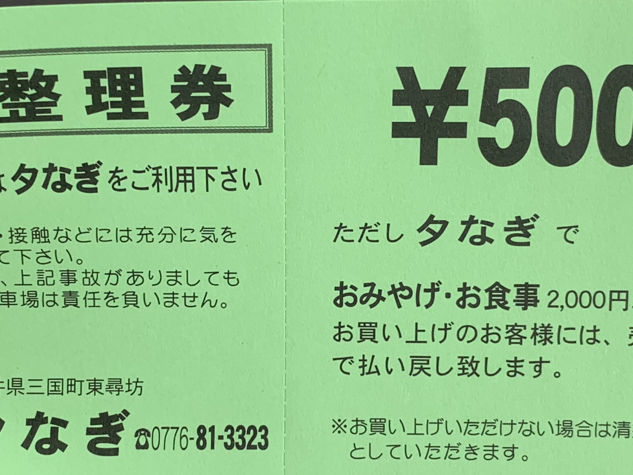 東尋坊の駐車場として…おみやげ・お食事2000円以上お買い上げで、払い戻し