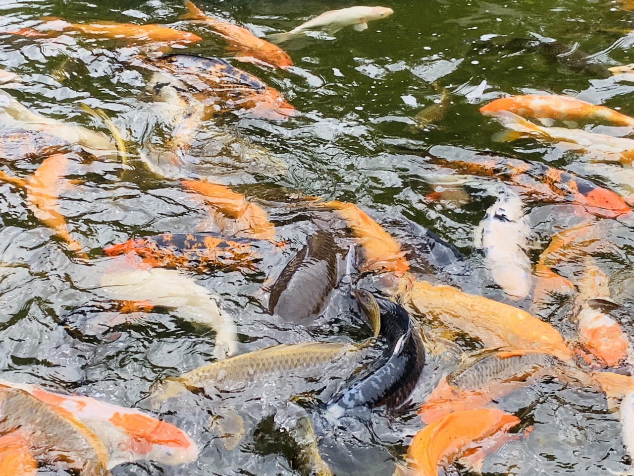 外に出ると、池に 「鯉」が たくさん泳いでいました。