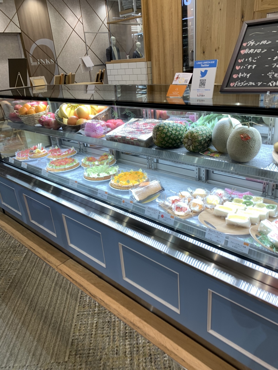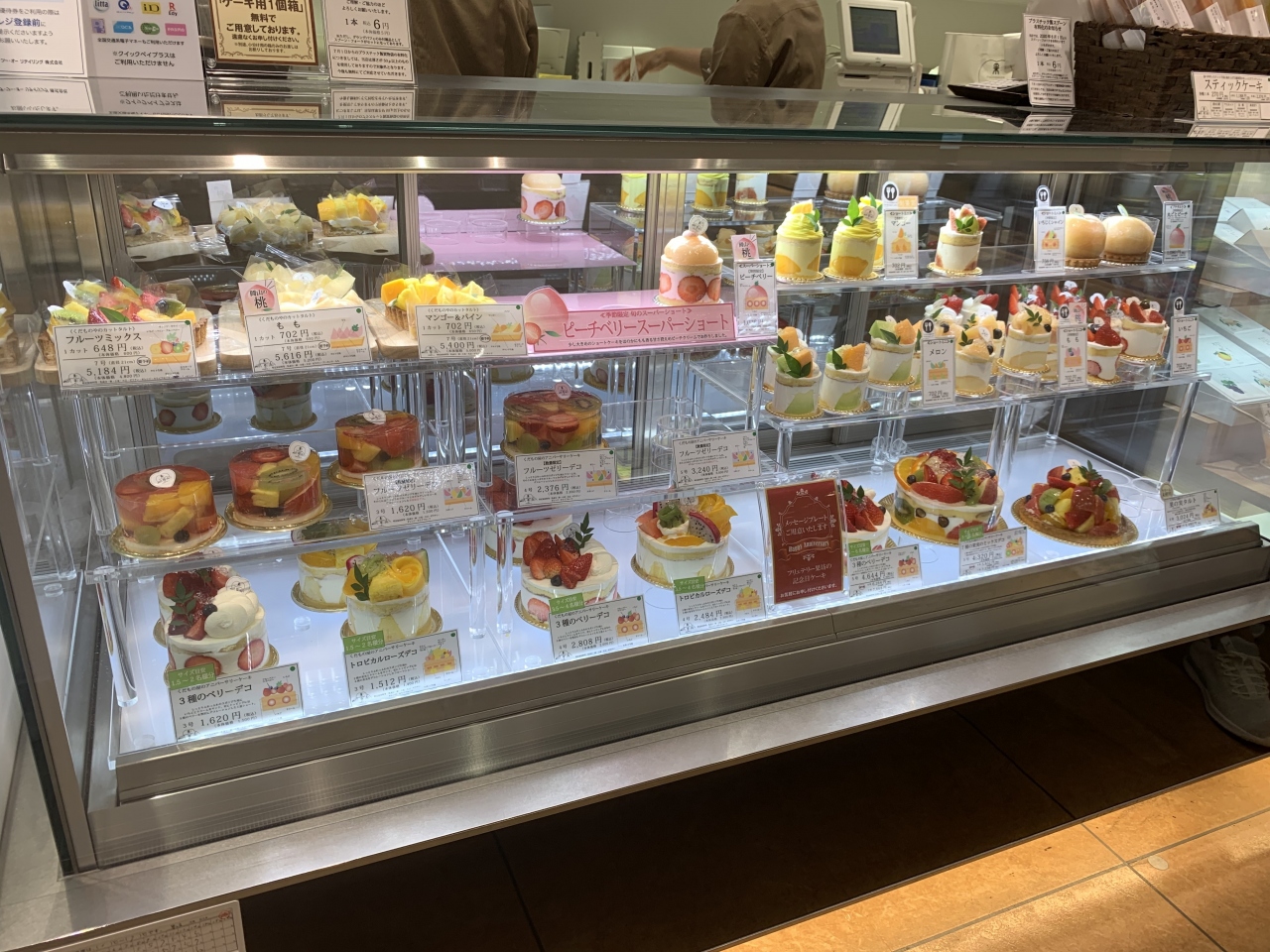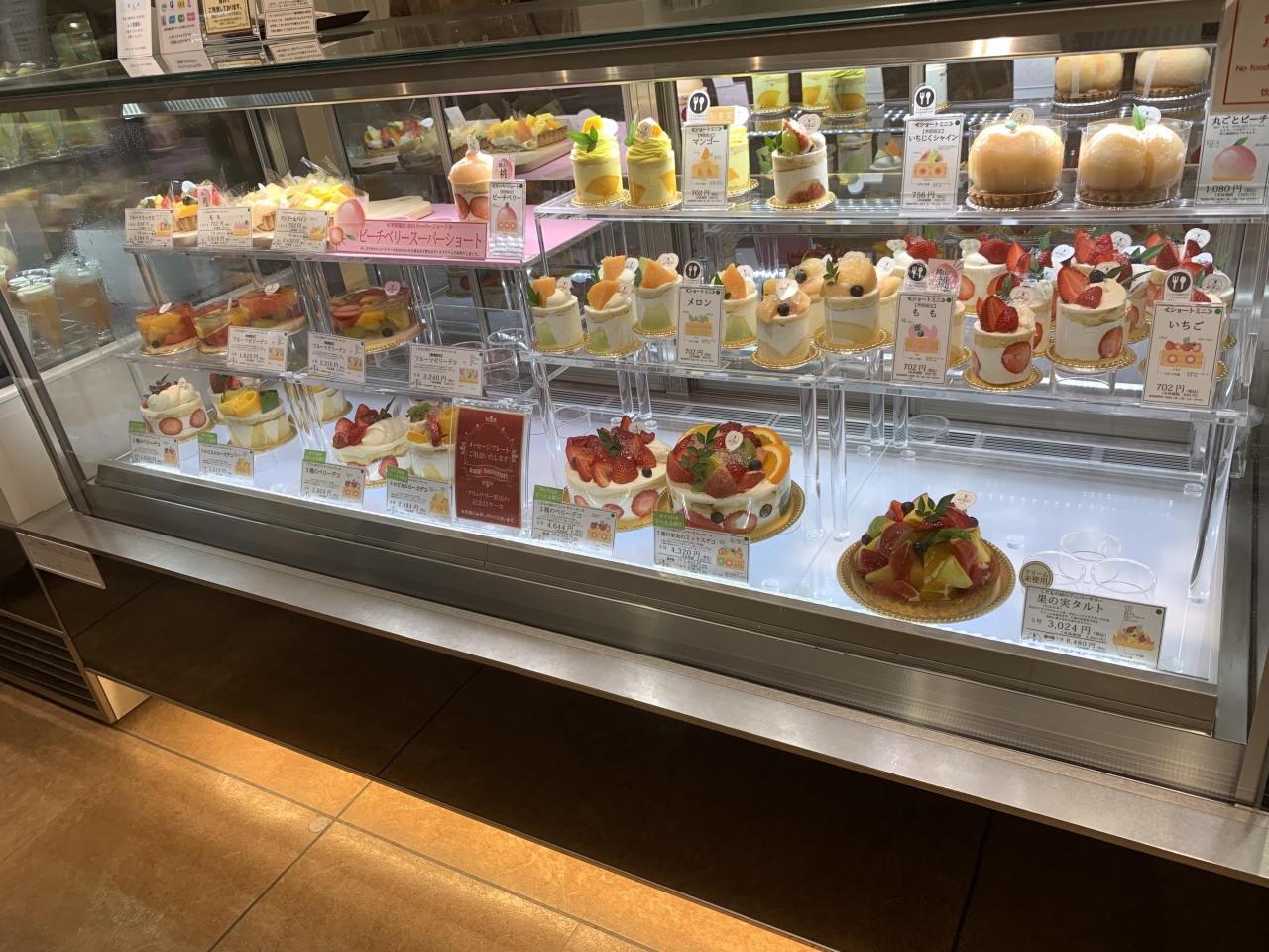 ショーケースには…フルーツたっぷりの 美味しそうな スイーツ が ズラリ〜と並び