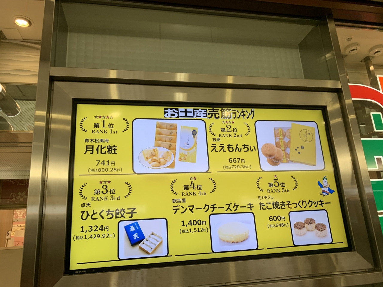 ちなみに この時の おみやげ売れ筋ランキング 第1位は「月化粧」741円 でした。