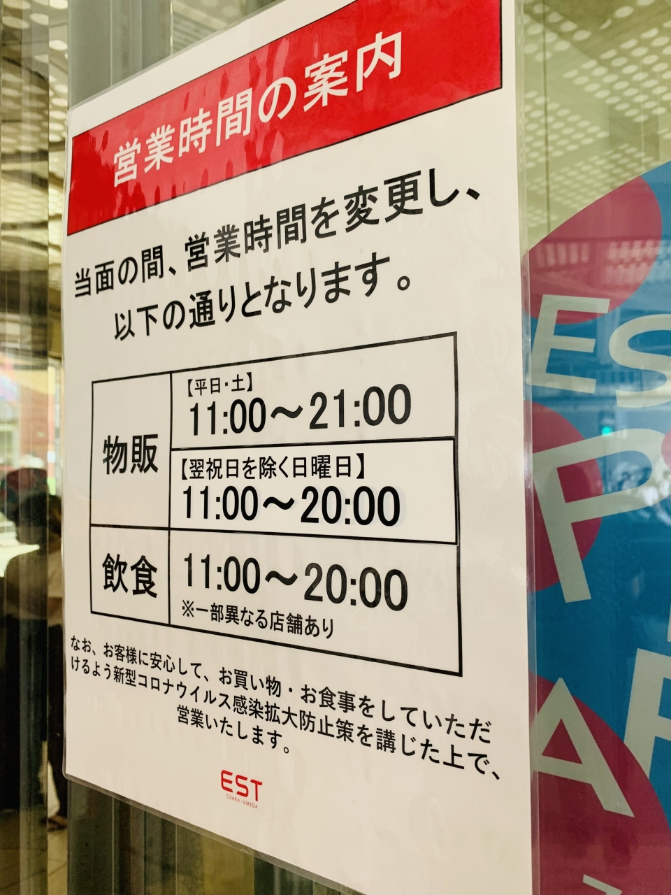 大阪 梅田のJR 高架下にある ショッピングモール 【 EST 】です。