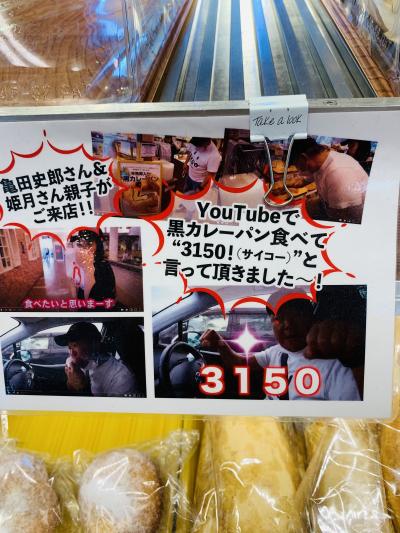 亀田史郎氏 が 黒カレーパン 食べて YouTube で、『3150(サイコー)』