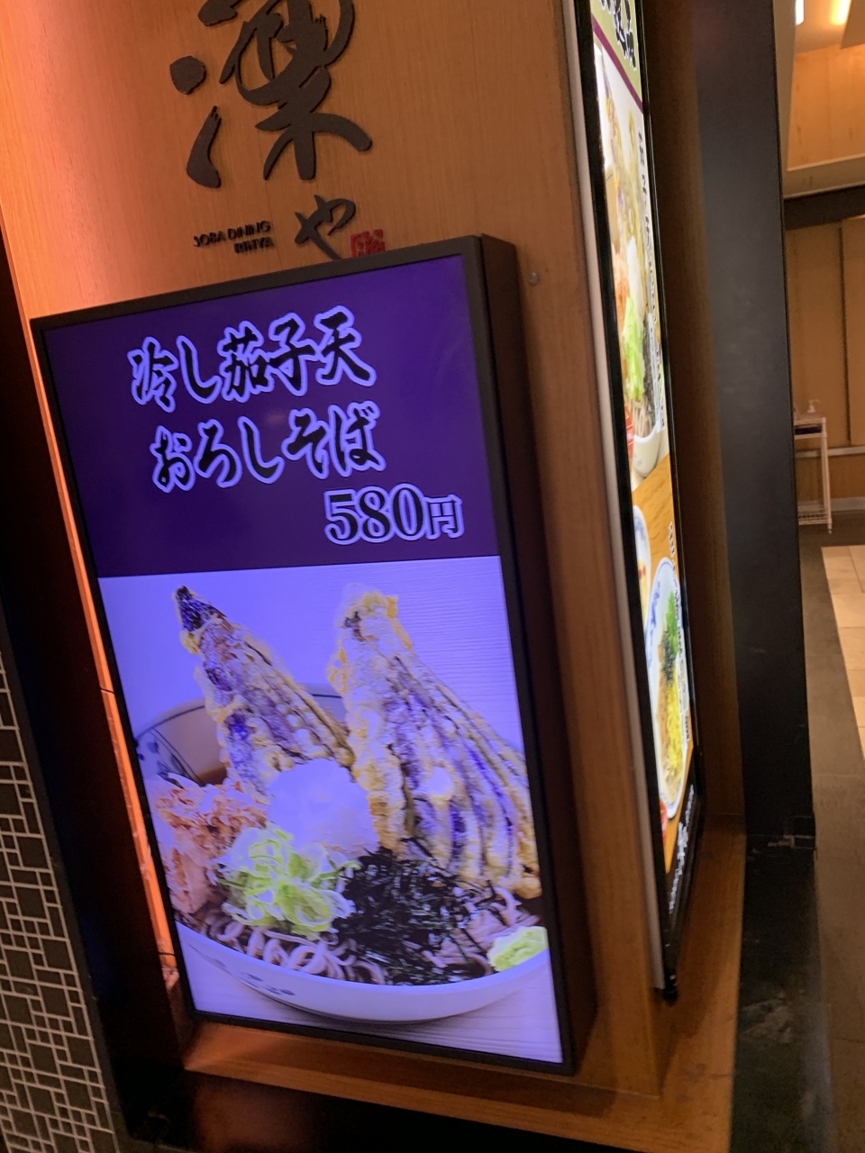 〈冷やし茄子天おろしそば〉〈坦々蕎麦つけ麺〉などのメニューもありました。