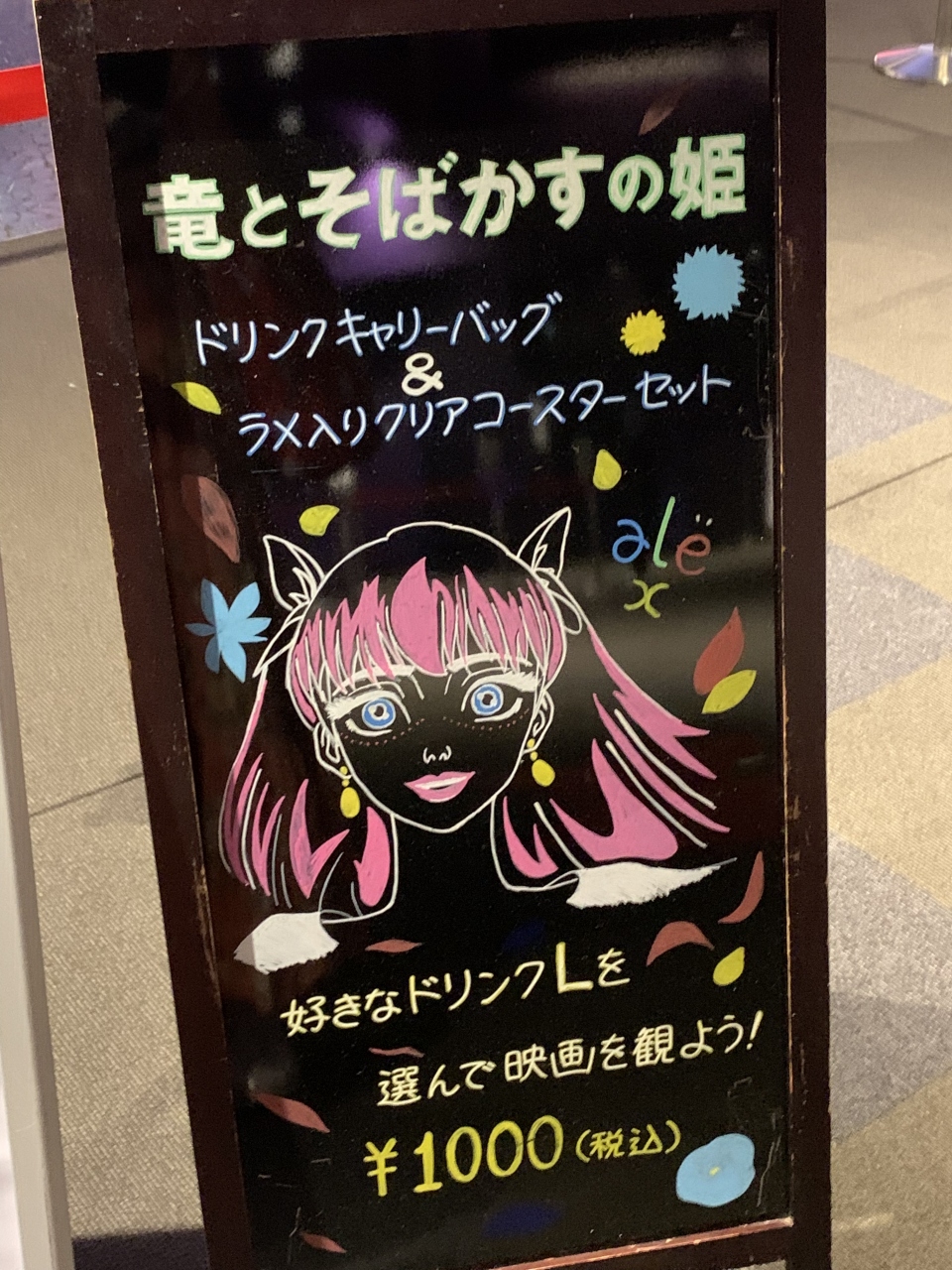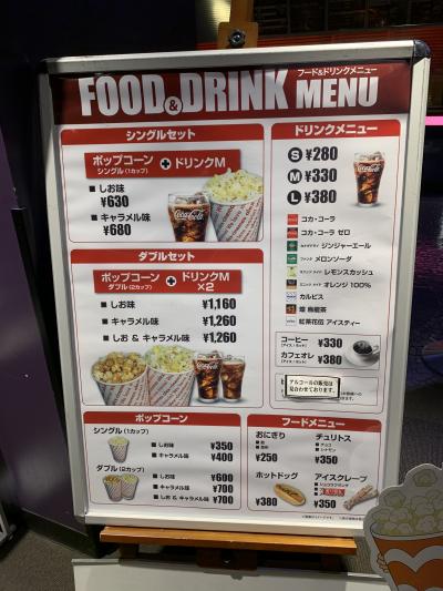 ドリンクLサイズ+劇場限定グッズ付きセット(ドリンクキャリーバック+ラメ入りクリアコースター) が 1000円 でした。