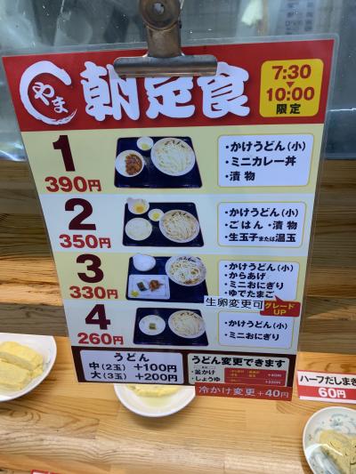 「朝定食」があったので、その1番にしました。「ざるうどん」に変更して…