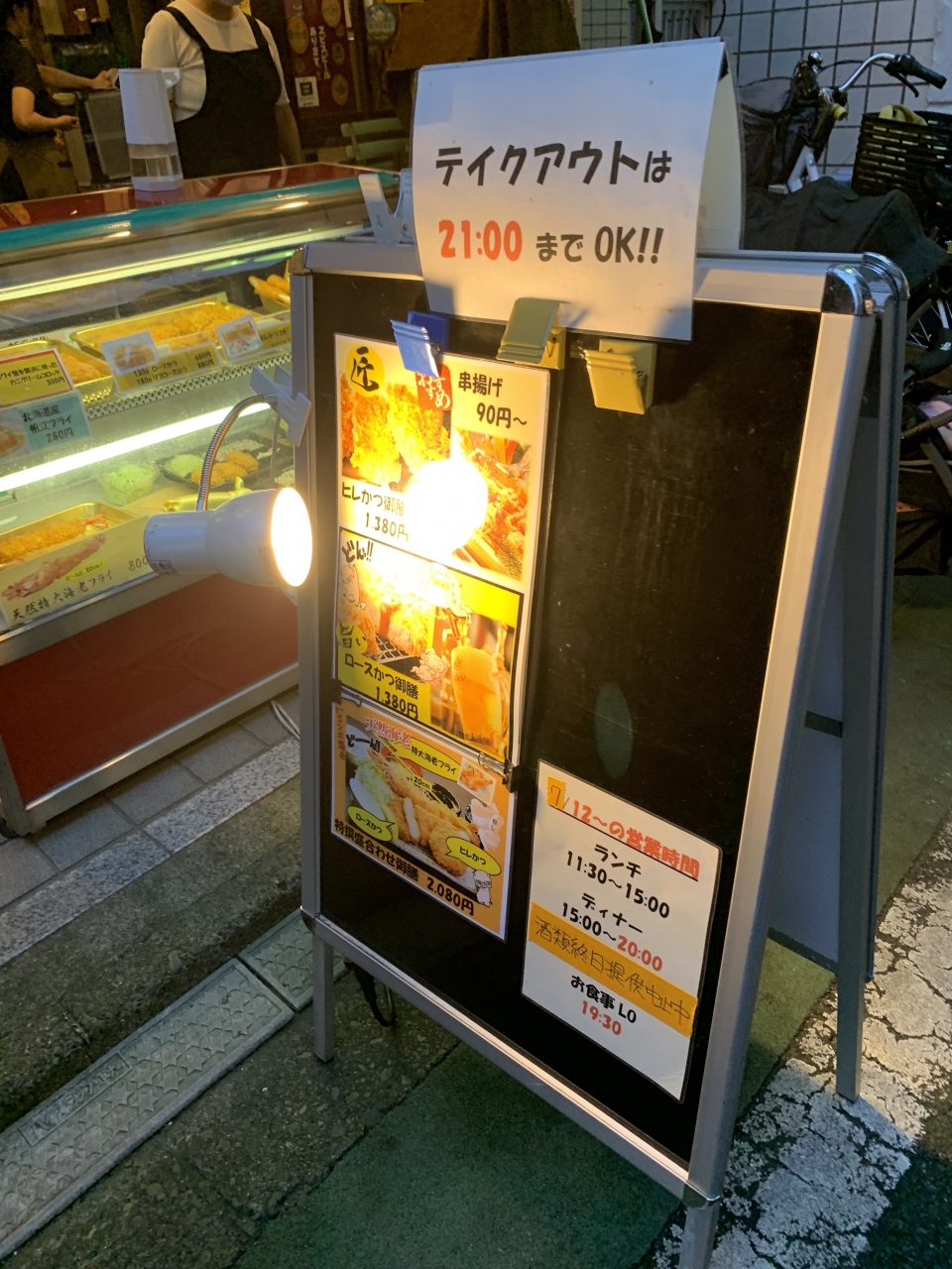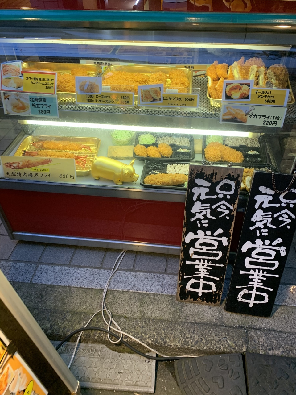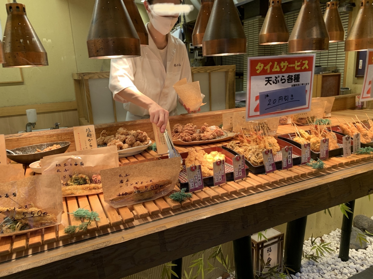 この時は 夕方だったので〈タイムサービス〉天ぷら各種1本 20円引きでした。- 旅行時期