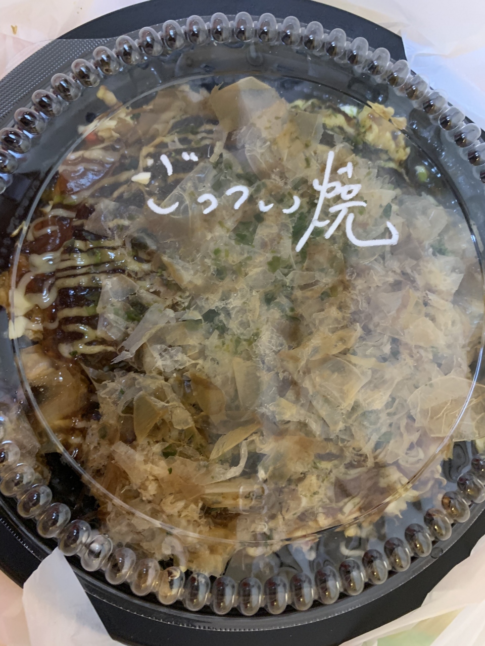 海鮮お好み焼きは、ぷりぷりのエビが たくさん入っていて