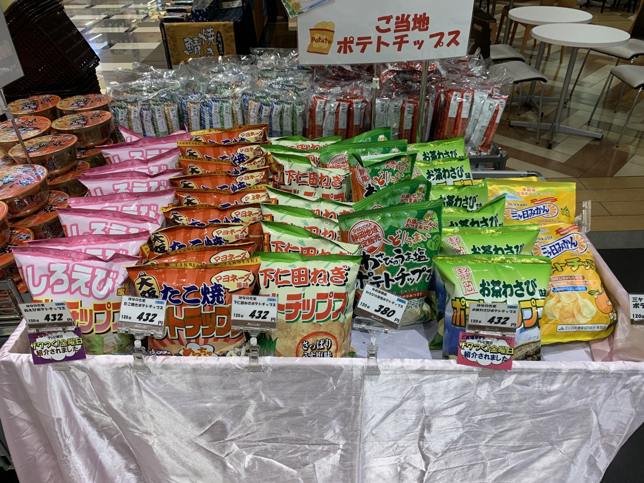 おみやげ屋さんには ご当地ポテトチップスが いろいろ並んでいました。