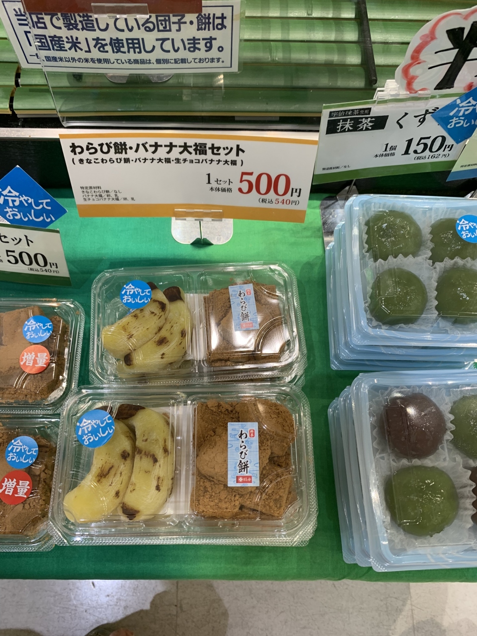 「わらび餅」「みたらし団子」「茶だんご」「水ようかん」「おはぎ」などなど…