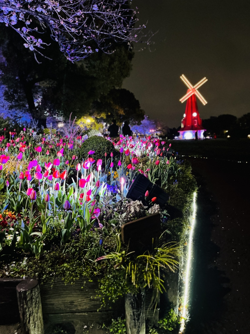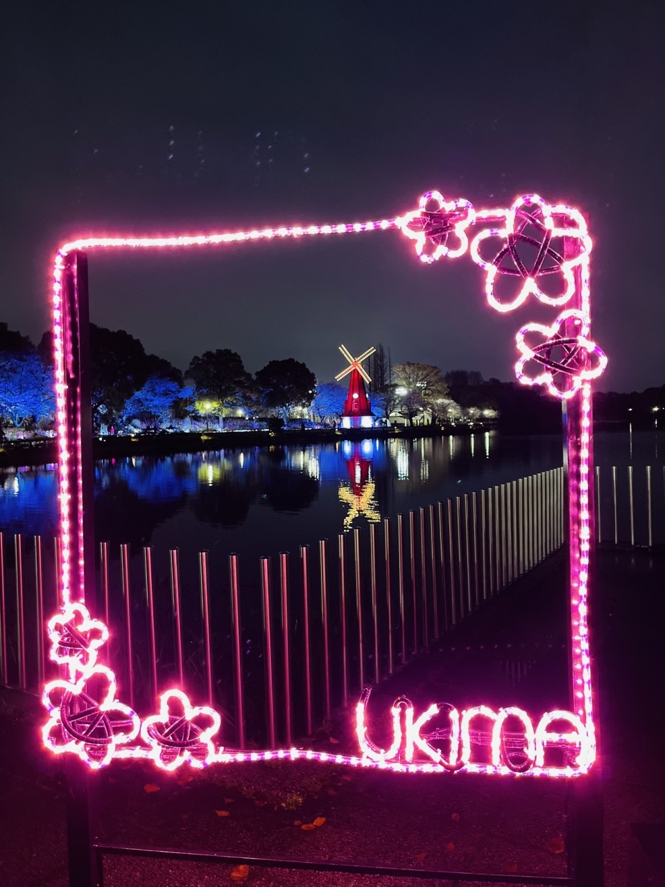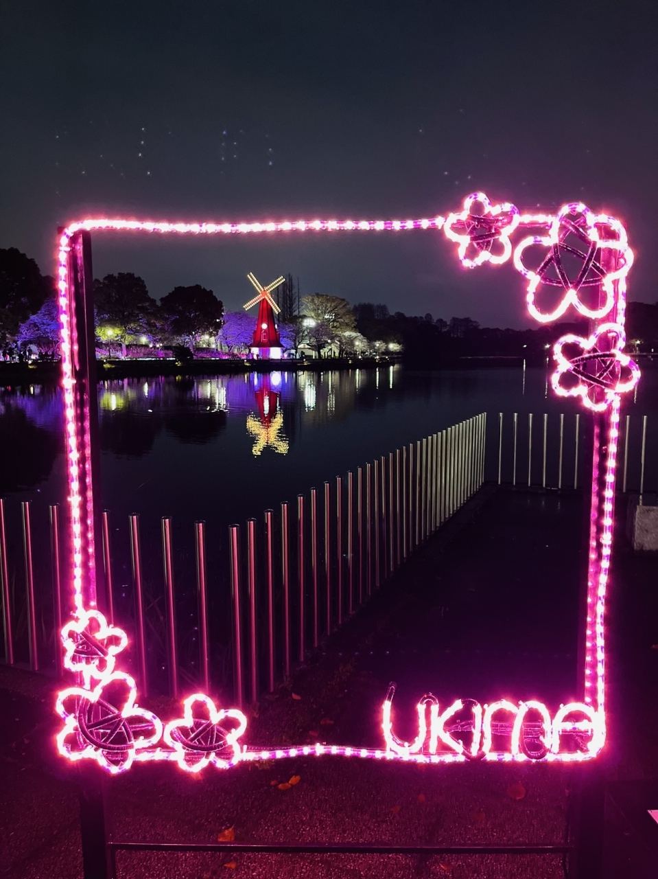 ライトアップされたフレームがあり 風車と ステキなお写真 撮れました。