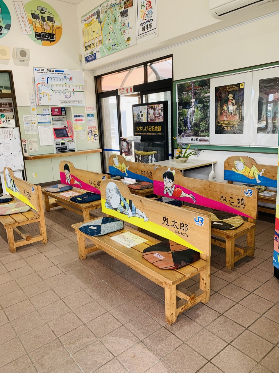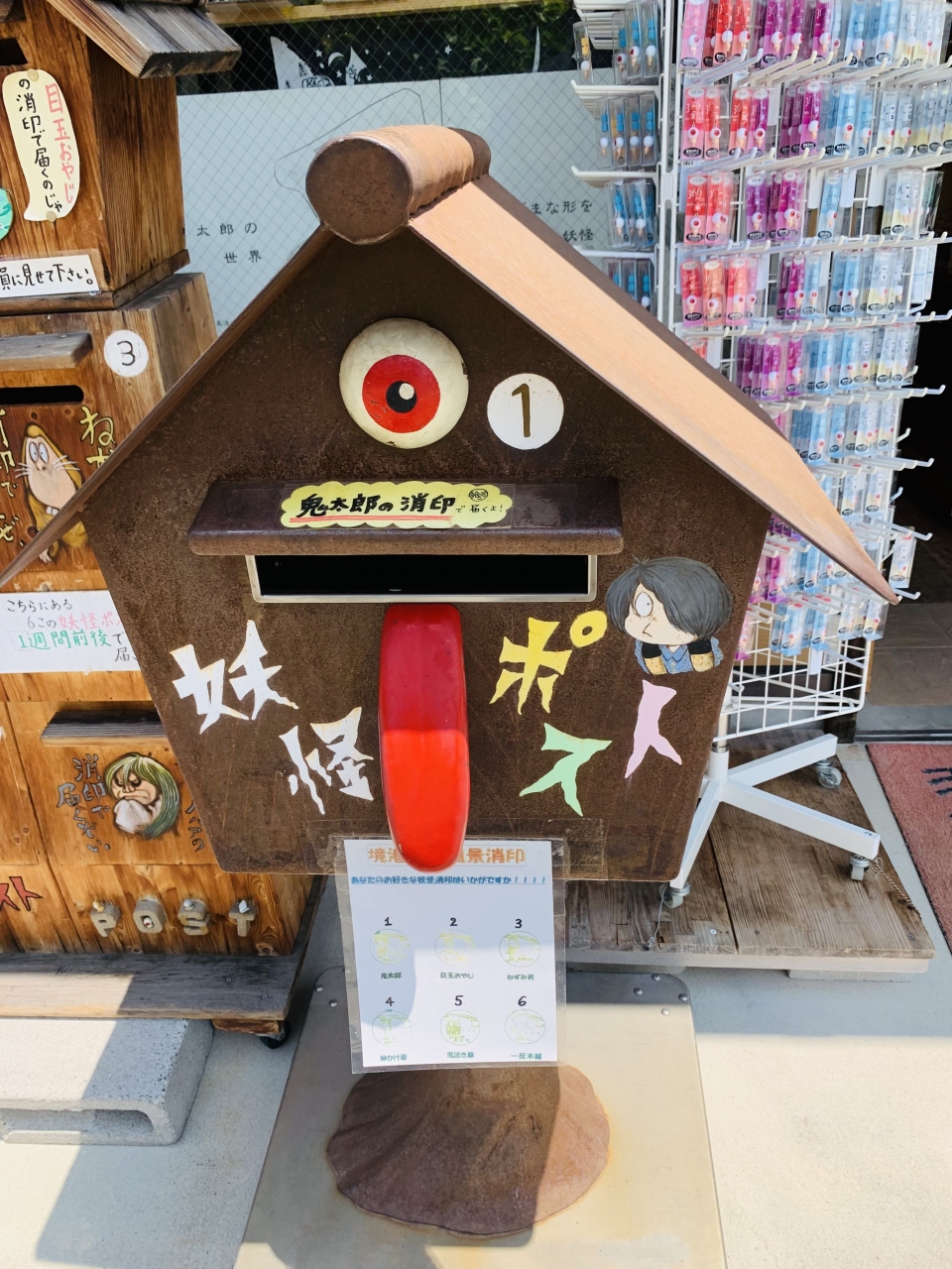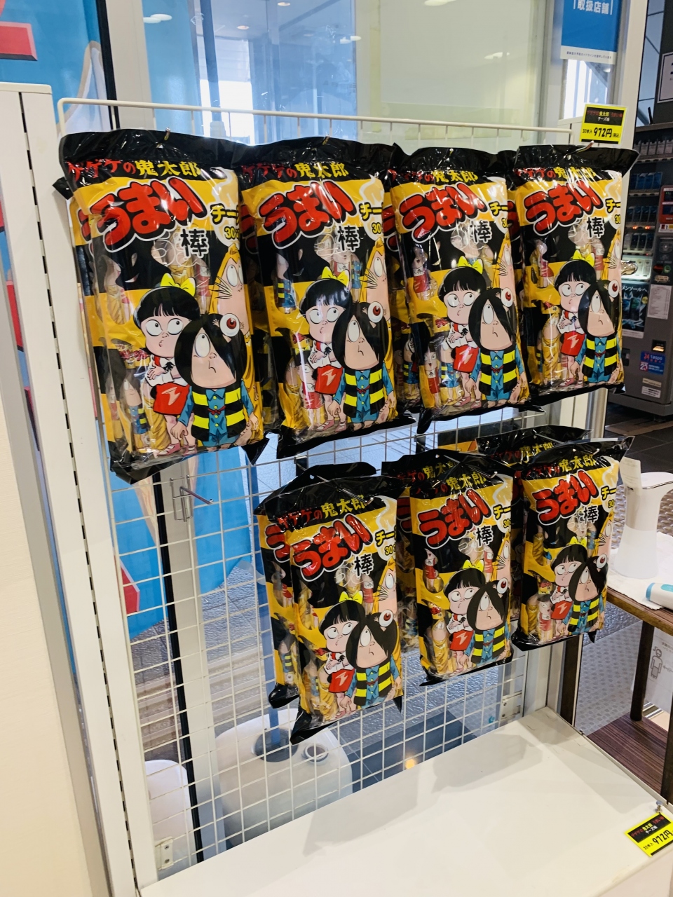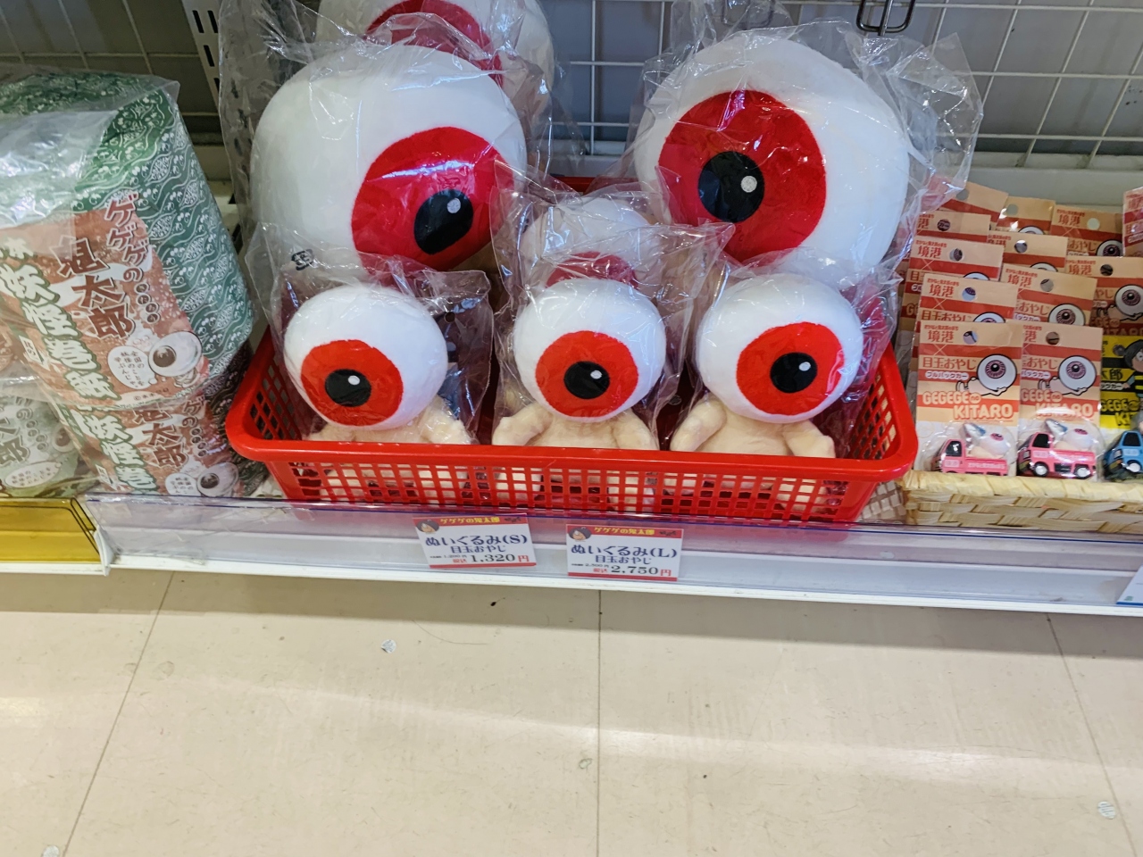 「ゲゲゲの鬼太郎」関連の おみやげ・グッズが並んでいて、見ていて楽しいです。