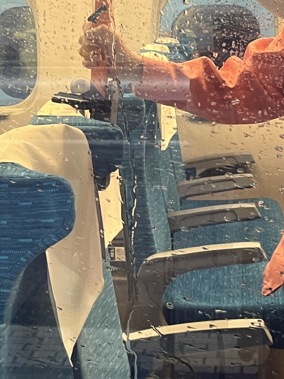清掃員の方が、車内清掃している様子を じぃ〜っと 見ていました。