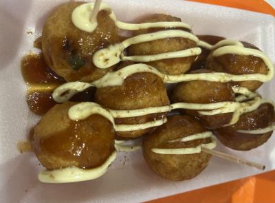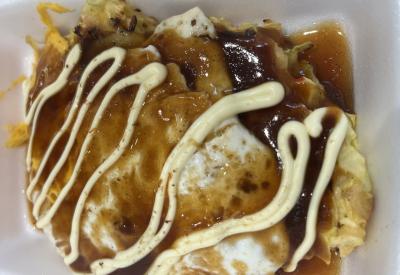 フードコートで お好み焼きとたこ焼きを食べました