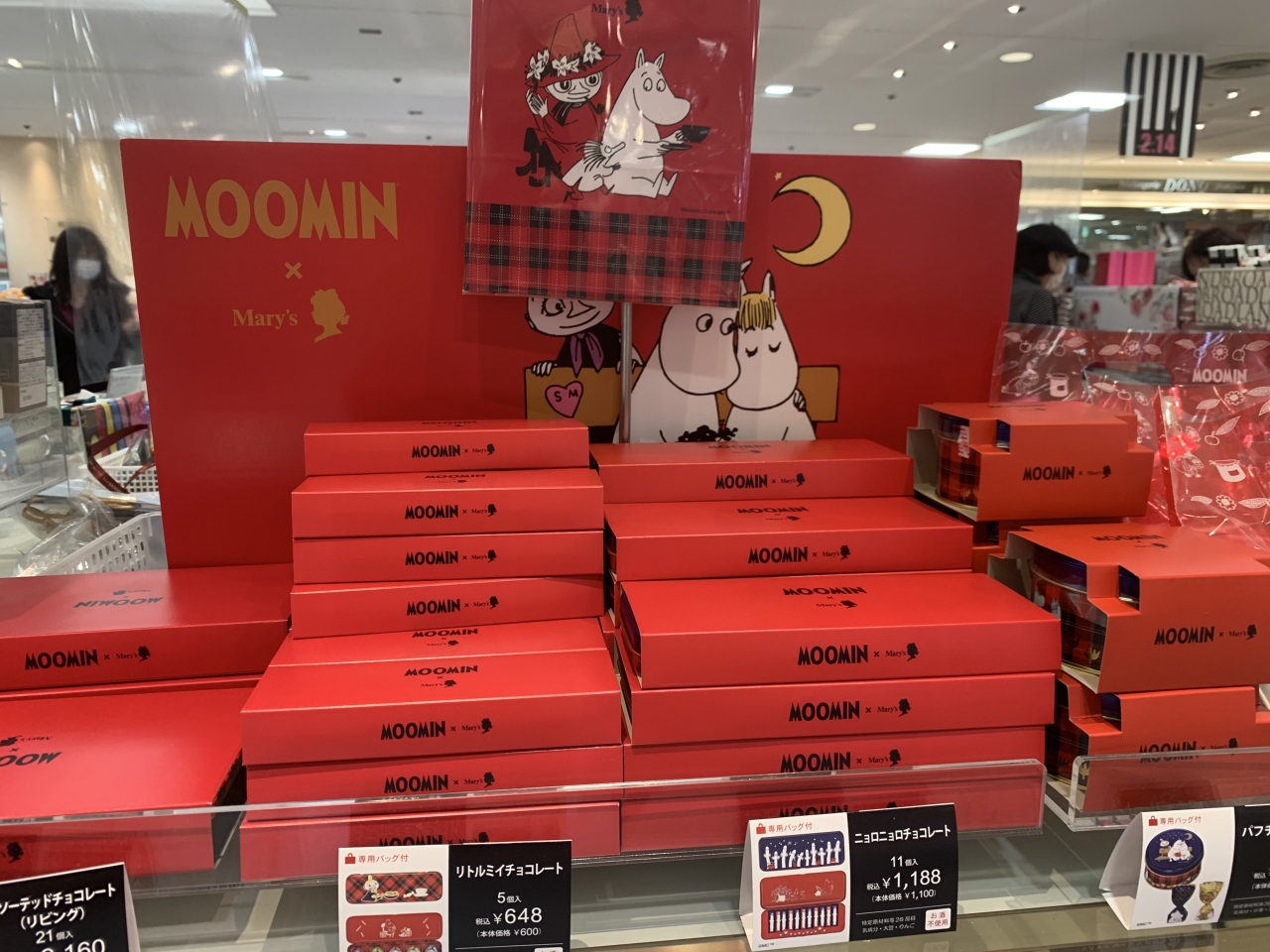 可愛い「ムーミン」「リトルミイ」「ニョロニョロ」のチョコレート商品が、たくさんありました。