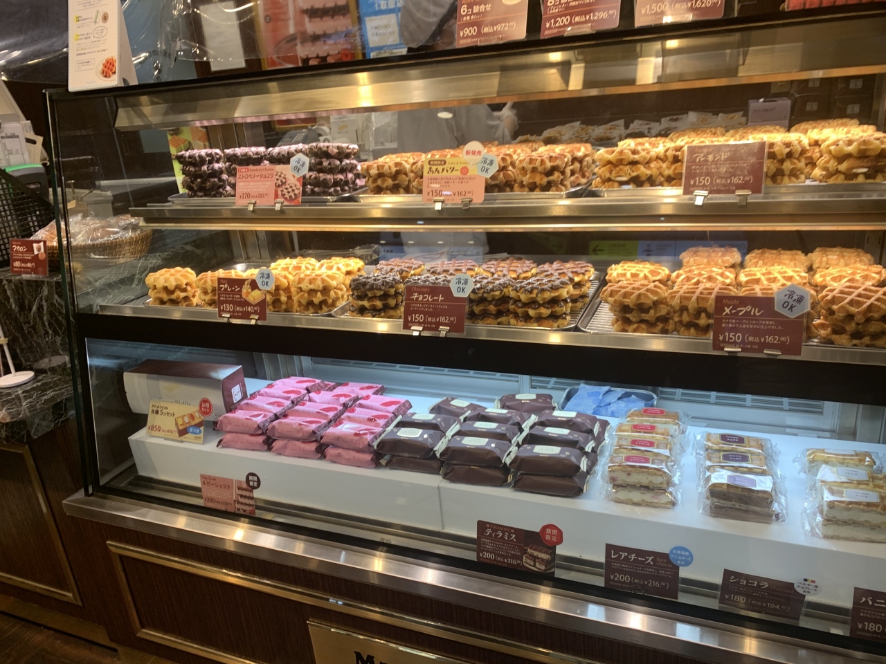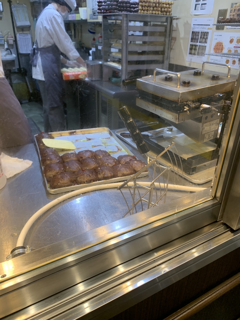 焼きたてワッフルを作っているところを、ガラス越しに見ることができます。