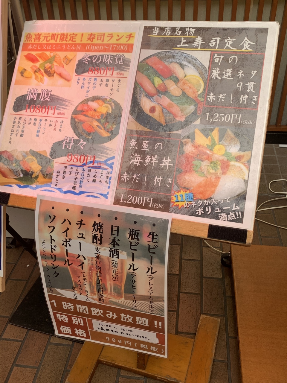 神戸 「元町1番街商店街」にあるこちらのお店【 回転寿司 魚喜】