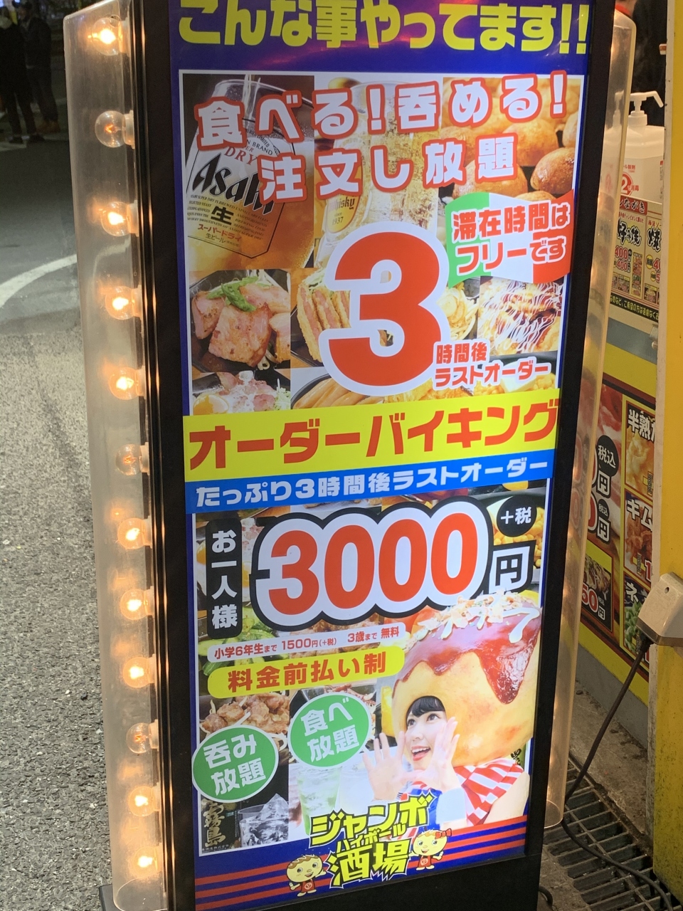 食べる!呑める!注文し放題 3時間後 ラストオーダー 滞在時間はフリー