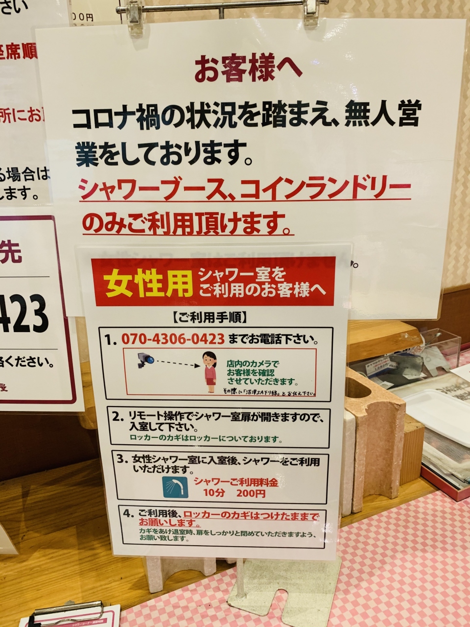 コロナ禍で シャワー コインランドリー 無人営業でした。- 旅行時期