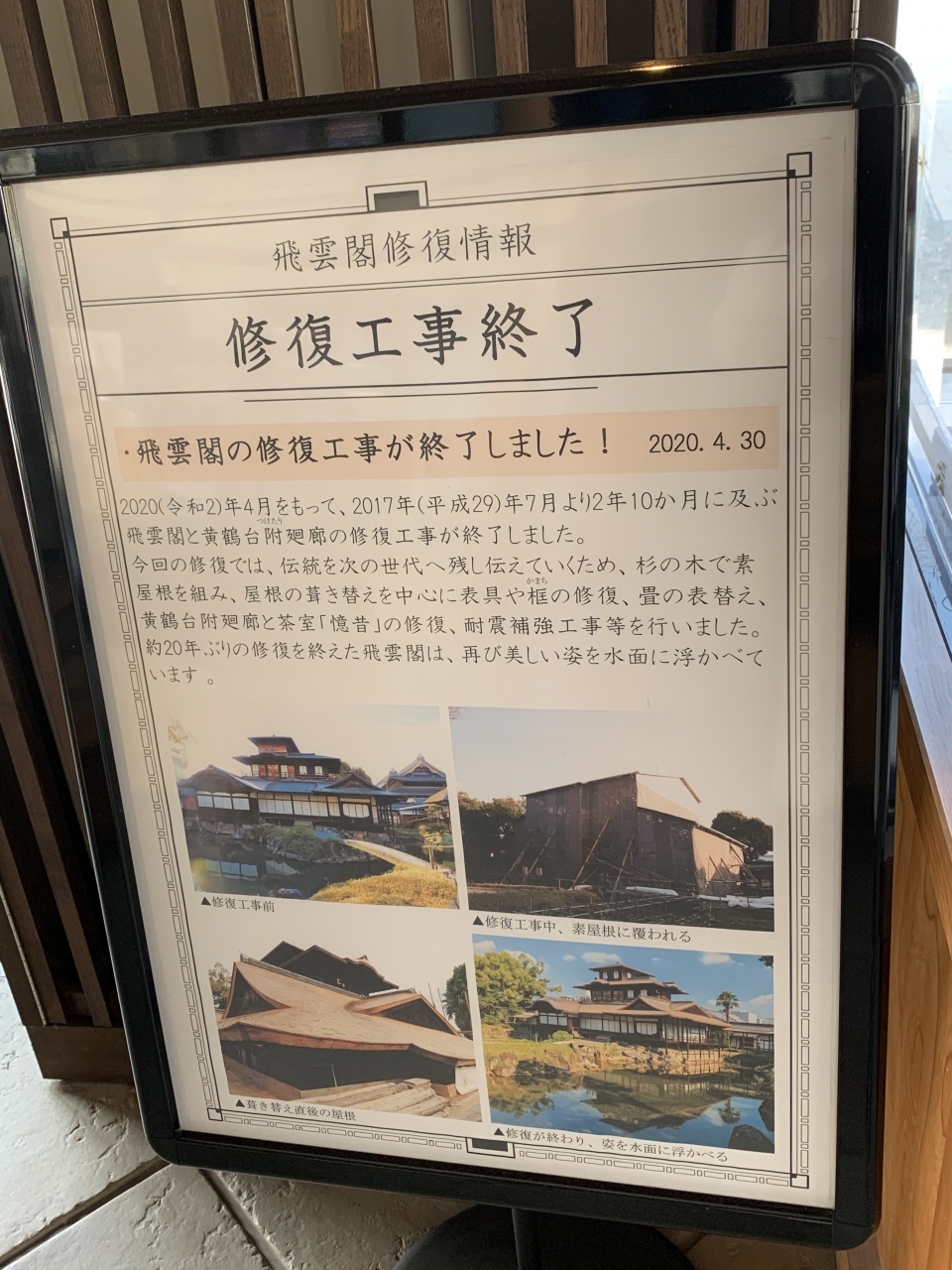 国宝「飛雲閣」は修復工事が終わっていたのですが、近くに行くことも出来ませんでした。
