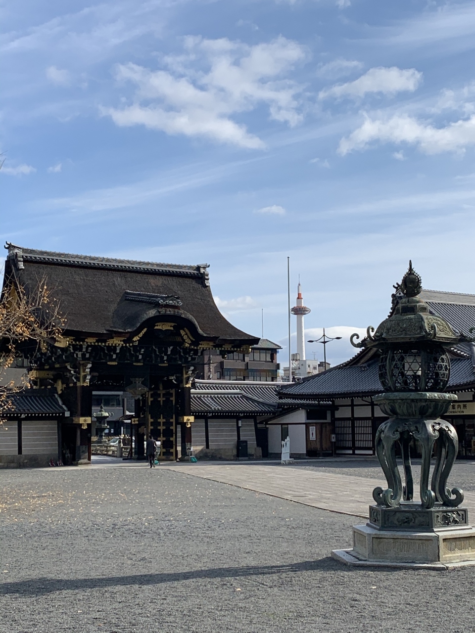 京都駅から「堀川通り」を歩いてくると まずは 西本願寺「御影堂門」があり、