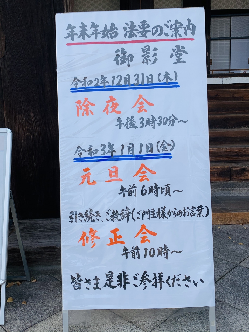 この時は 年末だったので 〈年末年始 法要のご案内〉がありました。