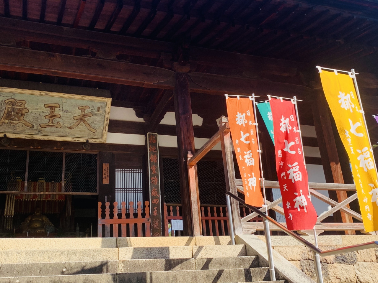 その後 寺の玄関「天王殿」で 日本最古都七福神「布袋尊」。