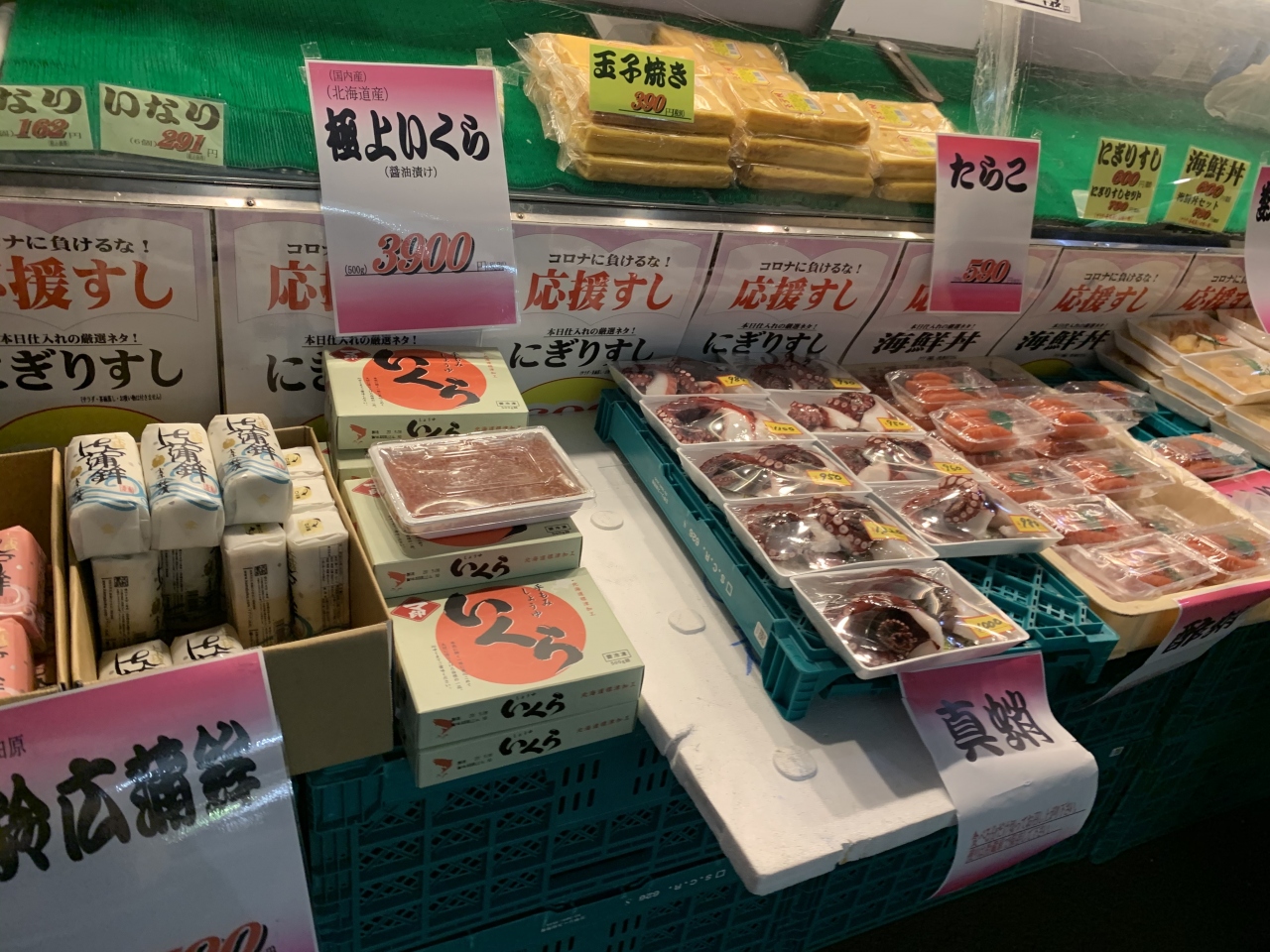 極上いくら・真蛸・たらこ・数の子・玉子焼き…などなどが ズラリと並んでいました。