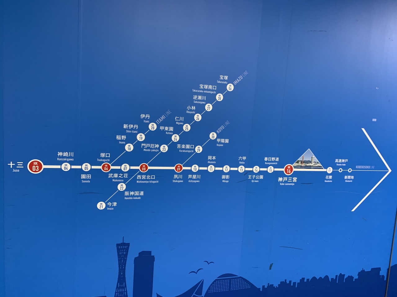 「十三」駅から「西宮北口」駅で乗り換えて「王子公園」駅まで利用しました。