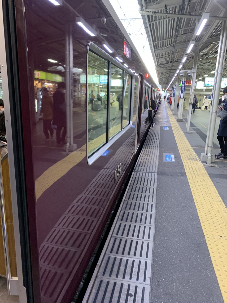 関東の車両と比較するとワインレッドの様なカラーがお上品で好きです。- 旅行時期