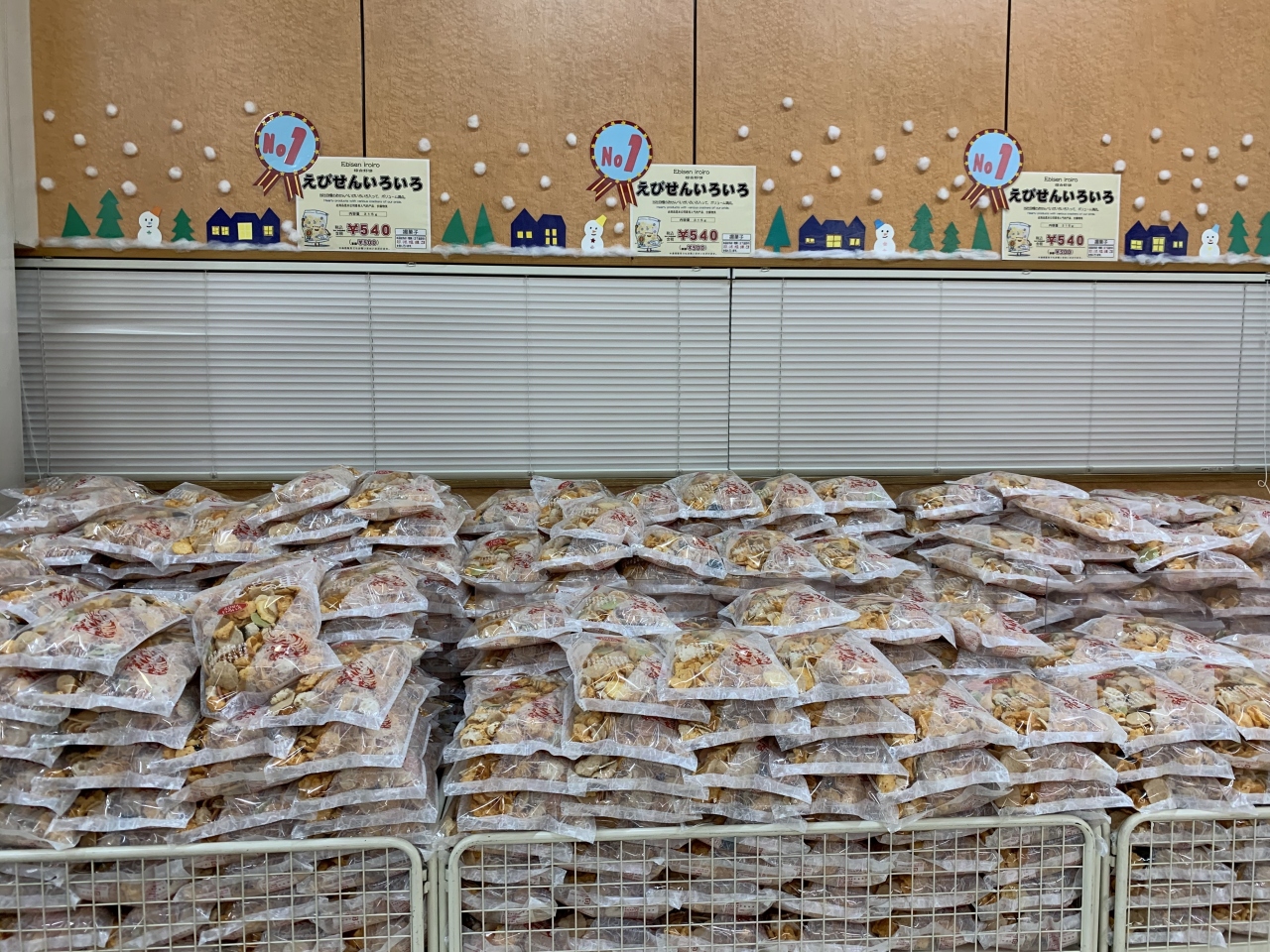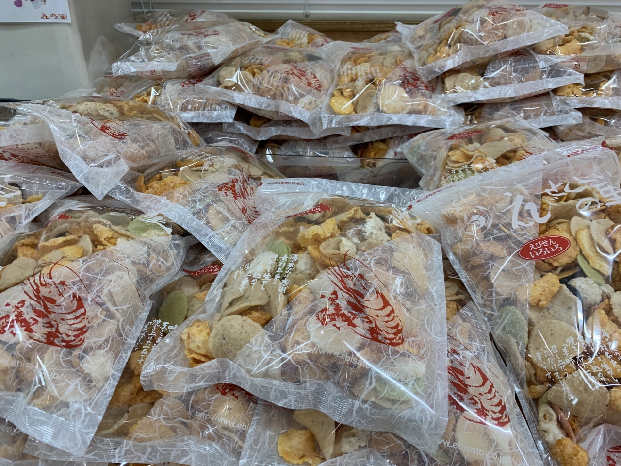 広い店内のは いろいろな種類のえびせんべいがあって、迷っちゃいます。