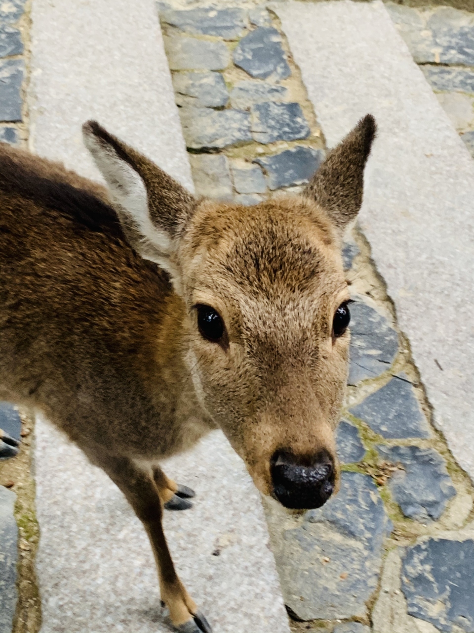 せんべい持ってると、あちこちから大量の鹿が急に寄ってきて、囲まれます。