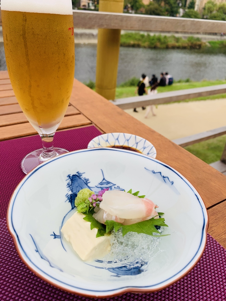 冷えたビール・日本酒 と共に「鴨川」を眺めながら ゆっくりとした時間が流れていきました