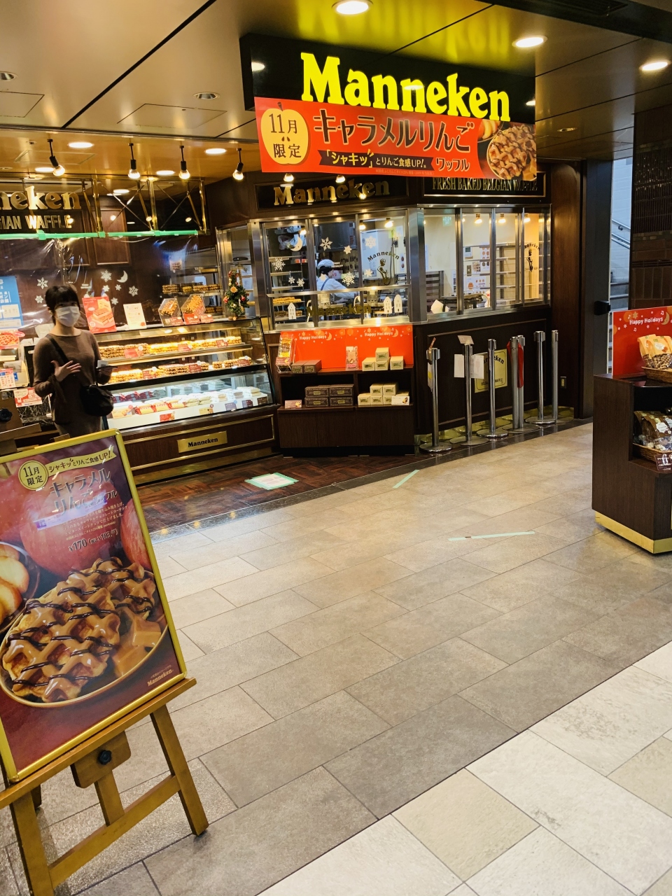 いろいろなワッフルのメニューがある人気店で、いつもお店の外までいい香りがしています。