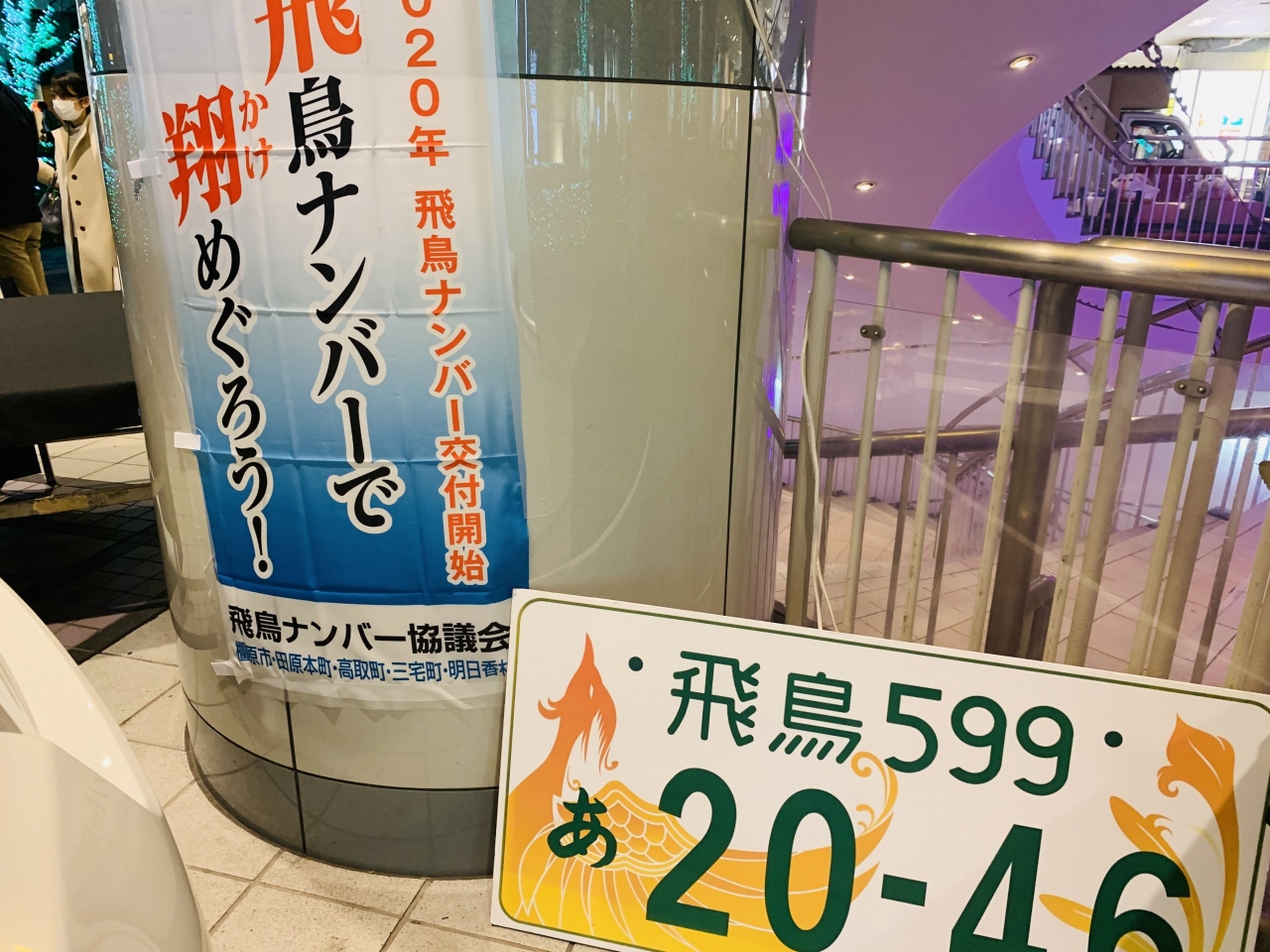 「飛鳥ナンバー」交付開始のイベントカーもありました- 旅行時期
