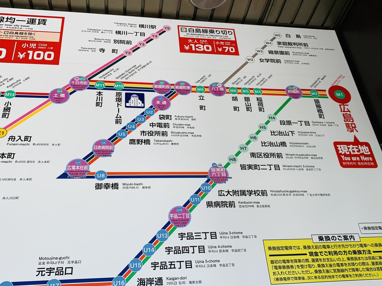 「広島駅」から「原爆ドーム前」まで こちらの 【 広島電鉄 】を まさに今利用しています。