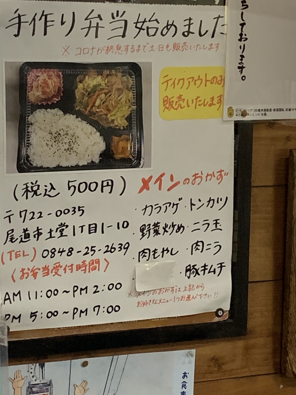 「手作り弁当」¥500も始めて、コロナが終息するまで土日も販売。