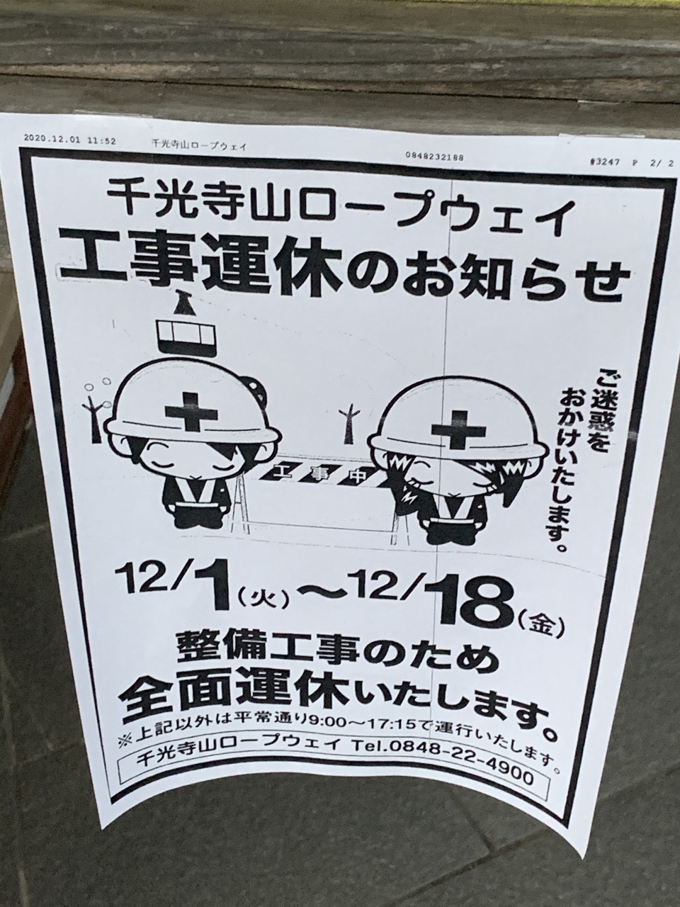 生憎 【 千光寺山ロープウェイ 】が 〈整備工事のため全面運休〉でした。