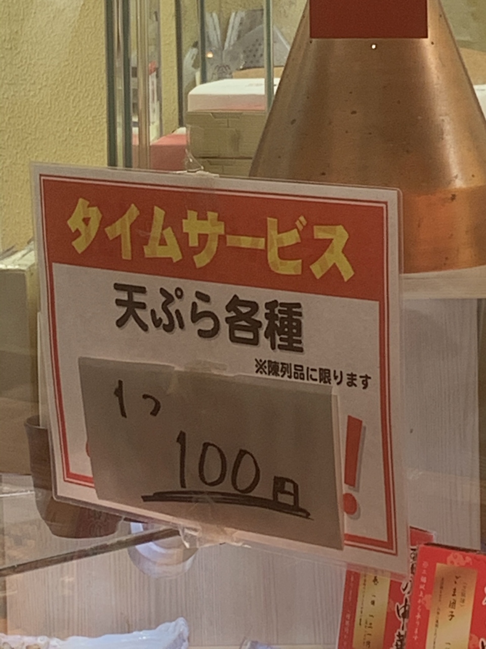 タイムサービス 天ぷら各種 1つ100円 などもあり いろいろ お得ですね