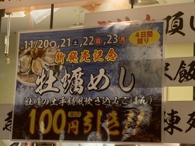 この時は 新発売記念「牡蠣めし100円引き!!」 4日間限り