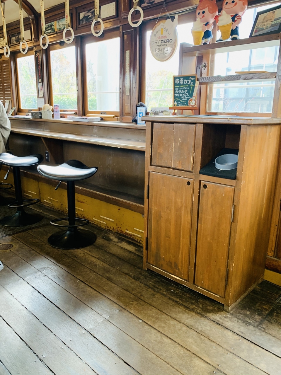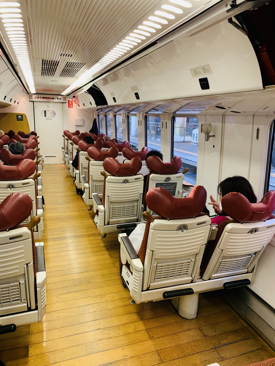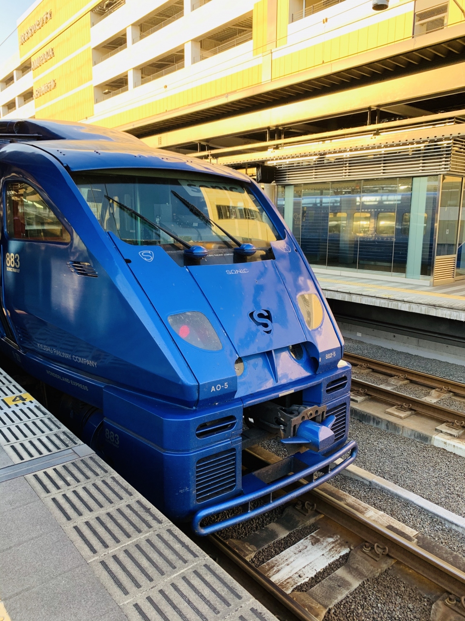 青い車体もオシャレだし、車内も清潔で、足元も脚を伸ばせて、とても快適でした。